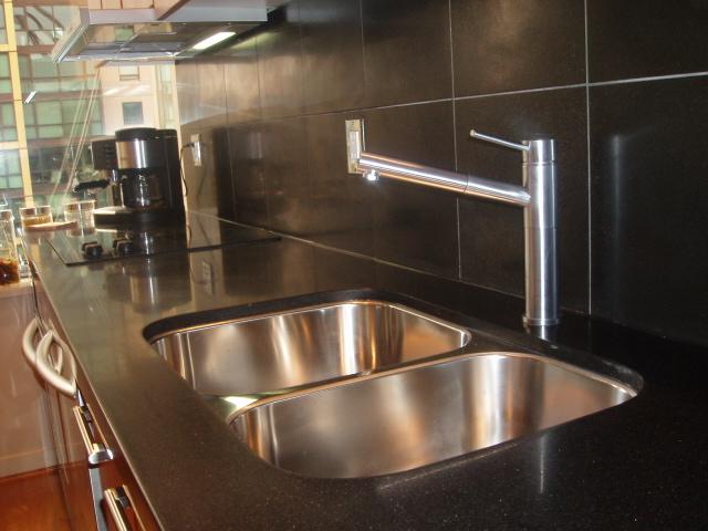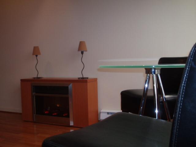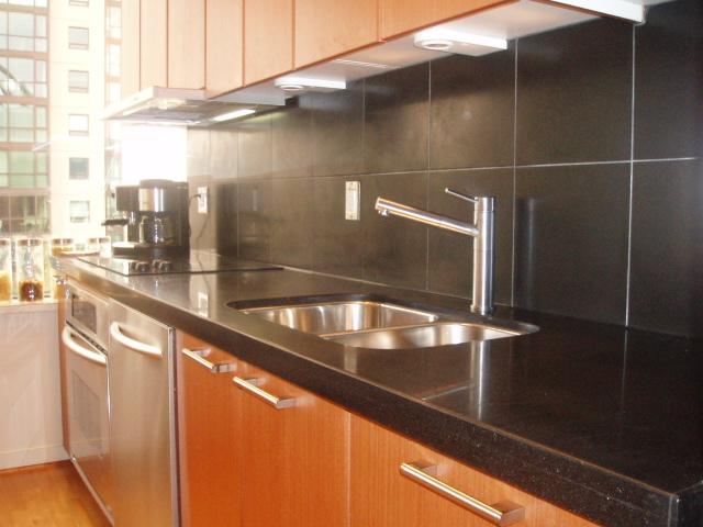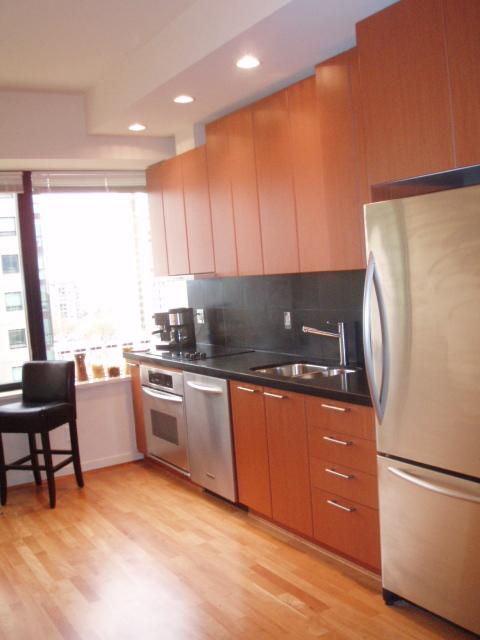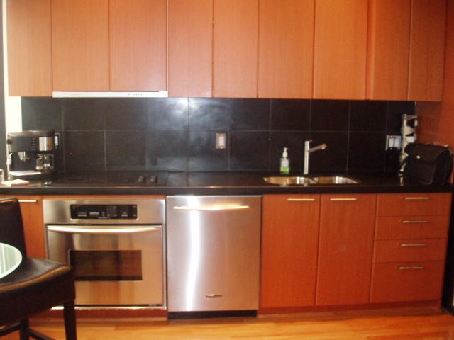 Sleek & Ultra Classy Loft Style Studio featuring: 9'5" ceilings, sexy 2" thick black granite kitchen countertops with black tiled backsplash, gorgeous hardwood floors throughout, natural mahogany European style cabinets, portable electric f/p with wood surround, ultra modern top mounted bathroom sink, soaker tub, 1'5" white tiled bathroom backsplash, top end Stainless Steel appliances with sleek pullout venthood & more!