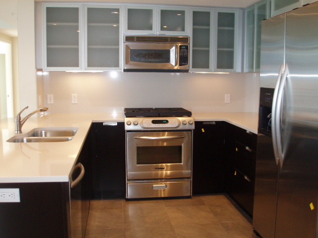 2 Bedroom, Master ensuite and 2nd bathroom, Maple Hardwood floors, Electric fireplace, Gorgeous espresso chocolate real wood cabinets, Stainless Steel appliances (gas stove, ultra quiet dishwasher, microwave, fridge with ice maker / water dispenser), insuite laundry, sleek roller blinds in every room, Marble countertops in bathroom, seperate shower / soaker tub in master ensuite, walk-in closet in 2nd bedroom, South east corner unit - a perfect combination of views and sunny / bright exposure,